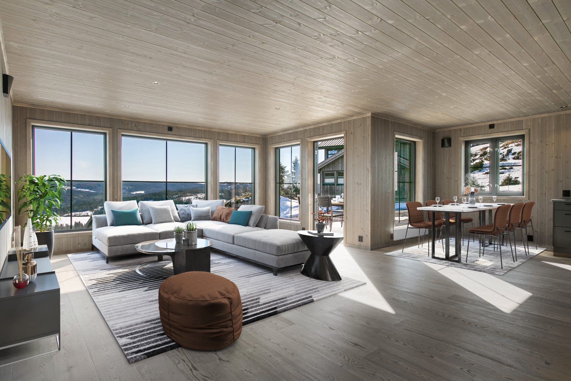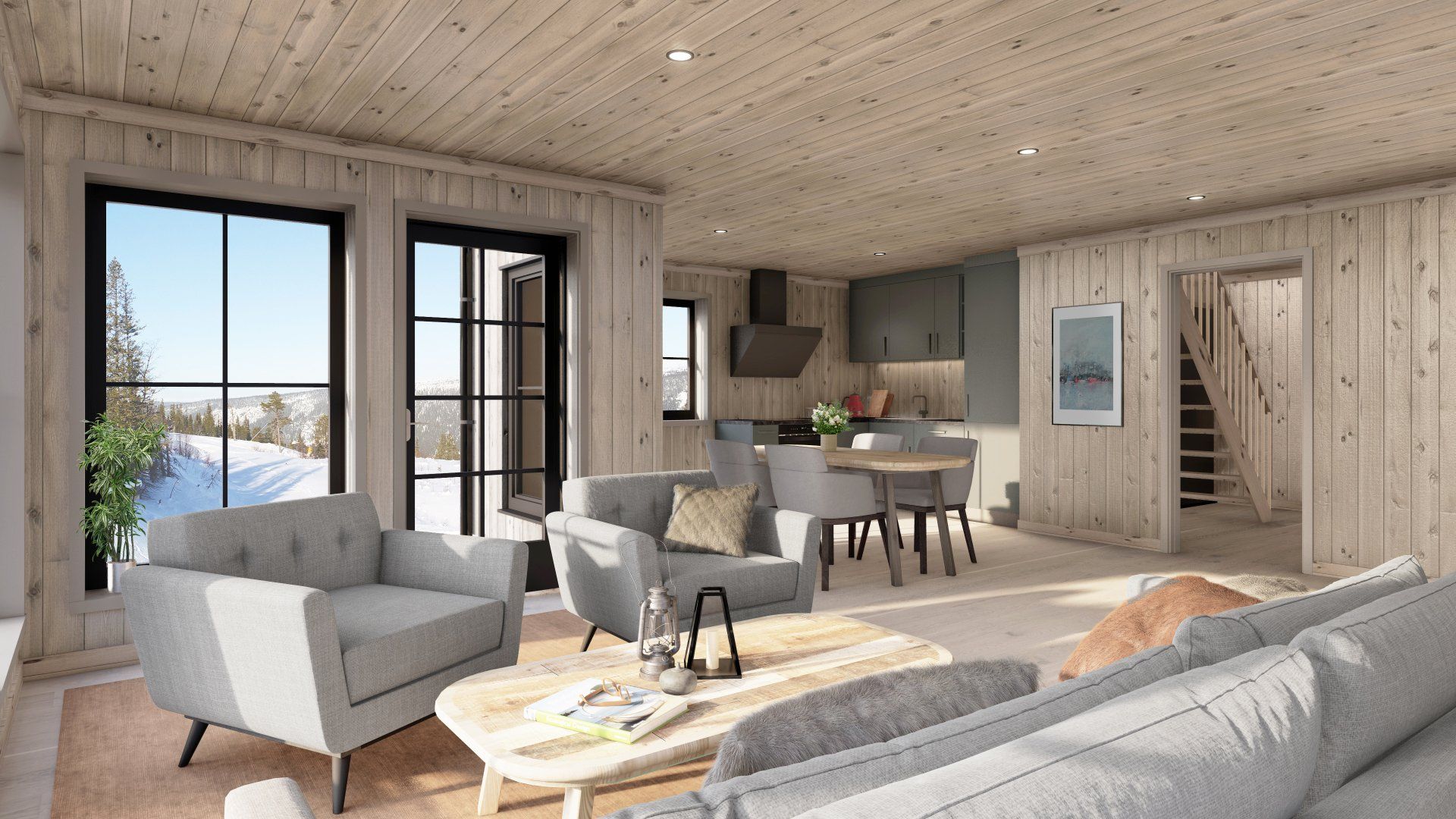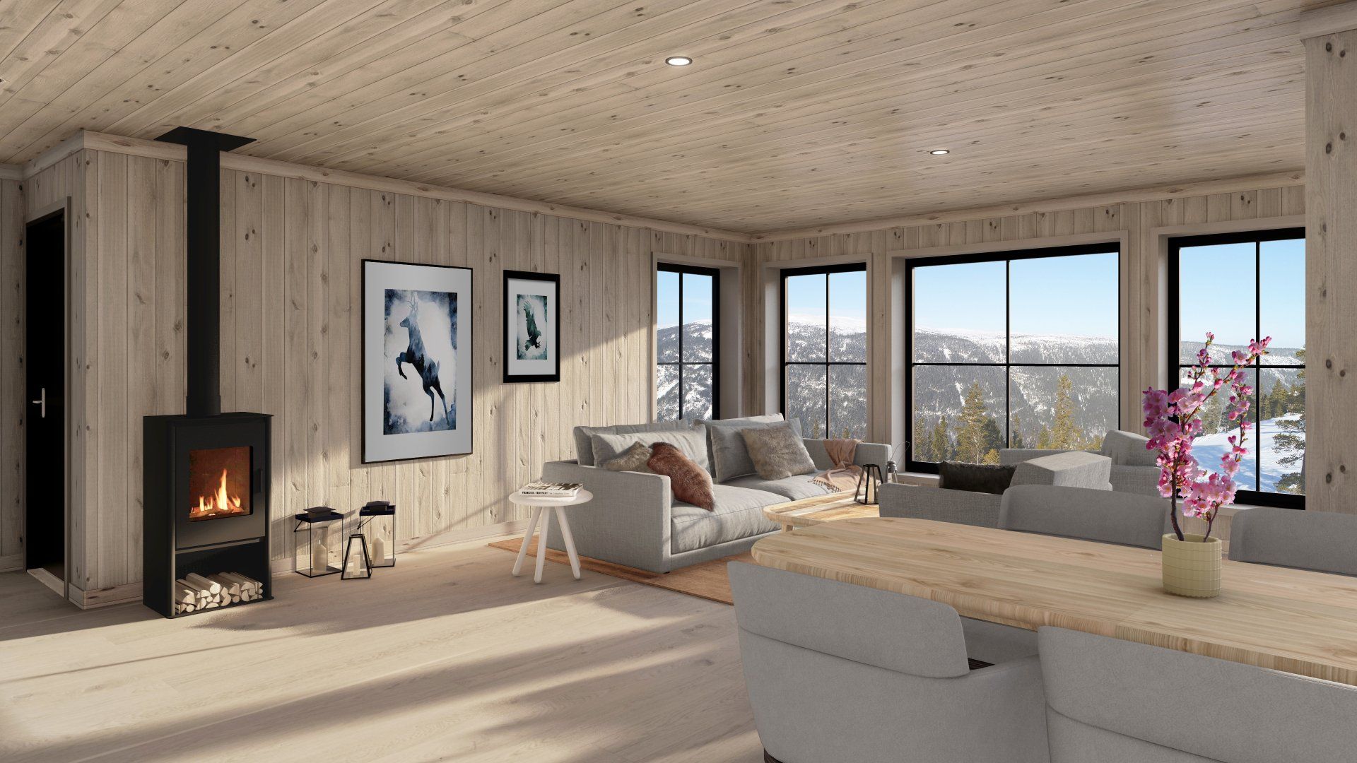 Inkl. MVA. Fra-prisen inkluderer komplett og nøkkelferdig hytte med oppgraderte valg som f.eks sorte kontakter som standard, beisede vegger inn- og utvendig, peis av kjent merke, parkettgulv, mm. Se fullstendig spesifikasjon lenger ned på siden.